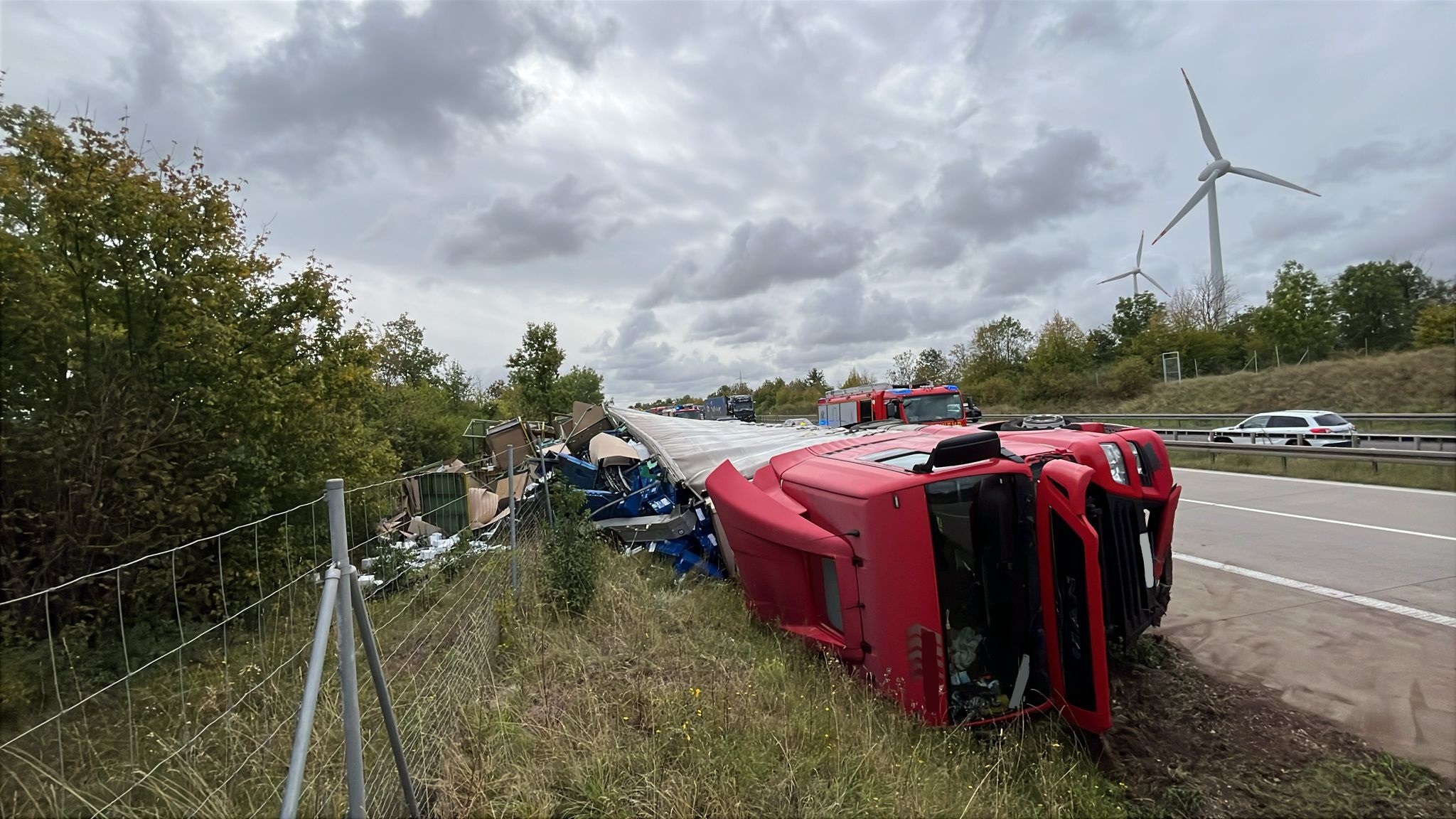 Am Montagmittag ereignete sich ein Verkehrsunfall, bei dem ein Lkw von der Fahrspurabkam und auf die Seite kippte. Glücklicherweise wurden keine Personen verletzt.