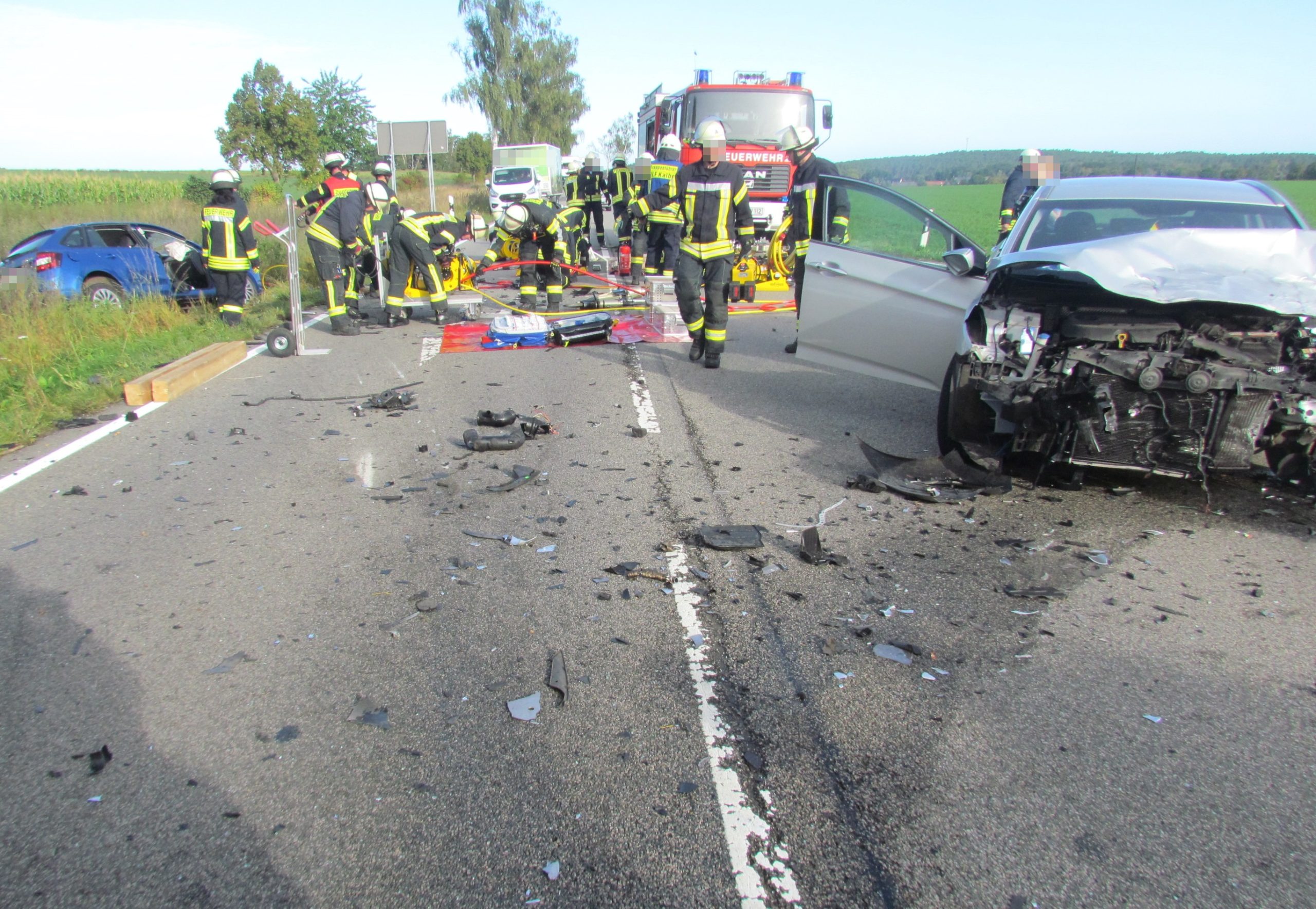 Ein 80-jähriger Fahrer war mit seinem Skoda auf der L12 aus Richtung Klein Engersen unterwegs und wollte an der Kreuzung zur Bundesstraße 71 in Richtung Gardelegen auf diese auffahren. Vermutlich übersah er dabei die Vorfahrt eines 61-jährigen Hyundai-Fahrers, der auf der Bundesstraße von Estedt in Richtung Wiepke unterwegs war. Im Kreuzungsbereich kam es zur Kollision der beiden Fahrzeuge. Der Skoda-Fahrer wurde in seinem Fahrzeug eingeklemmt und erlag noch an der Unfallstelle seinen schweren Verletzungen. Er wurde von der Feuerwehr aus dem Wrack geborgen. Seine 75-jährige Beifahrerin wurde schwer verletzt zunächst in das Krankenhaus Gardelegen gebracht und anschließend per Rettungshubschrauber in das Uniklinikum Magdeburg verlegt. Der Hyundai-Fahrer wurde leicht verletzt und zur Behandlung ins Altmarkklinikum Gardelegen eingeliefert. Beide Fahrzeuge waren nicht mehr fahrbereit und mussten abgeschleppt werden. Der Sachschaden wird auf einen Betrag im unteren fünfstelligen Bereich geschätzt. Während der Unfallaufnahme und der Bergung der Fahrzeuge, bei der auch ein Hubschrauber im Einsatz war, kam es auf der Bundesstraße 71 für etwa drei Stunden zu Verkehrsbehinderungen.