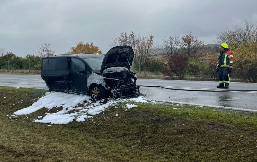 Der 40-jährige Fahrer bemerkte kurz vor der Anschlussstelle Wernigerode-Mitte das Aufleuchten der Motorkontrolllampe und beabsichtigte dort die Autobahn zu verlassen. Im Bereich der Ausfahrt stellte er Flammen im Motorraum fest und hielt sofort an.