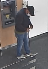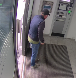 Das vorliegende Bildmaterial zeigt den unbekannten männlichen Täter bei der Geldabhebungen am Geldautomaten in Zörbig.