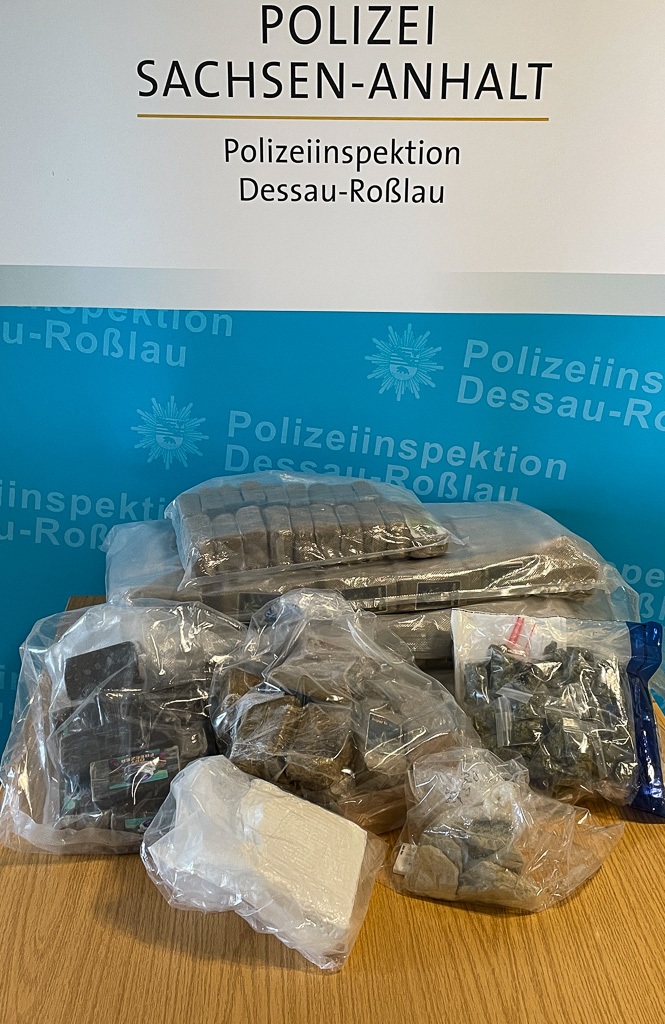Ermittlungen wegen des Verdachts des gewerbsmäßigen unerlaubten Handeltreibens mit Betäubungsmitteln und Cannabis in nicht geringer Menge Ermittlungsbeamte stellen u. a. ca. 25 kg Haschisch, ca. 3,3 kg Marihuana und ca. 500 g Kokain sicher (Stadt Dessau-Roßlau)