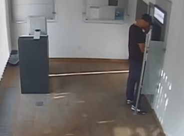 Das vorliegende Bildmaterial zeigt den unbekannten männlichen Täter bei der Geldabhebungen am Geldautomaten in Jeßnitz.