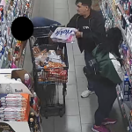 Das vorliegende Bildmaterial zeigt den unbekannten männlichen Täter bei der Tathandlung des Diebstahls. Des Weiteren ist eine unbekannte weibliche Person erkennbar, welche sich augenscheinlich gemeinsam mit dem Täter im Markt bewegt.