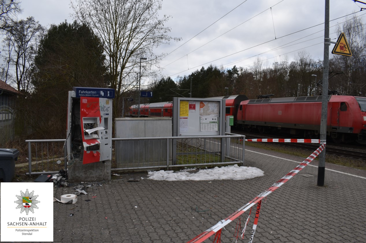 Durch eine bislang unbekannte Täterschaft wurde in der Nacht zum Sonntag, gegen 02:45 Uhr, ein Fahrkartenautomat am Bahnhof in der Ortslage Möser gesprengt.