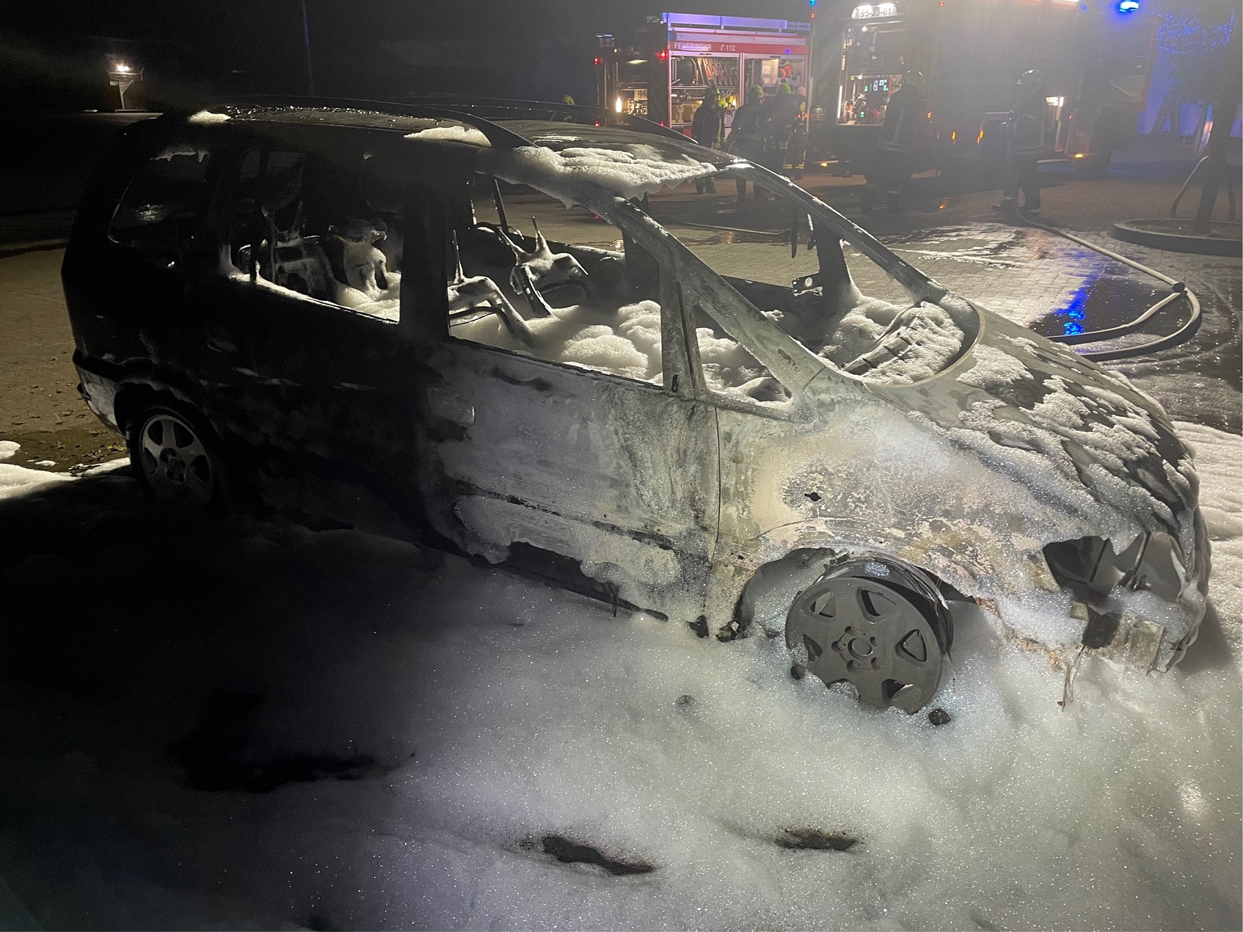 Nach aktuellem Ermittlungsstand bemerkten Zeugen das brennende Fahrzeug gegen 02:35 Uhr und verständigten die Feuerwehr. Trotz sofortiger Löschmaßnahmen wurde der PKW vollständig durch die Flammen zerstört. Das Fahrzeug parkte bereits seit Längerem an diesem Ort. Es entstand ein Sachschaden von 4.000 Euro. Umliegende Gebäude oder Dritte wurden nicht gefährdet oder verletzt.