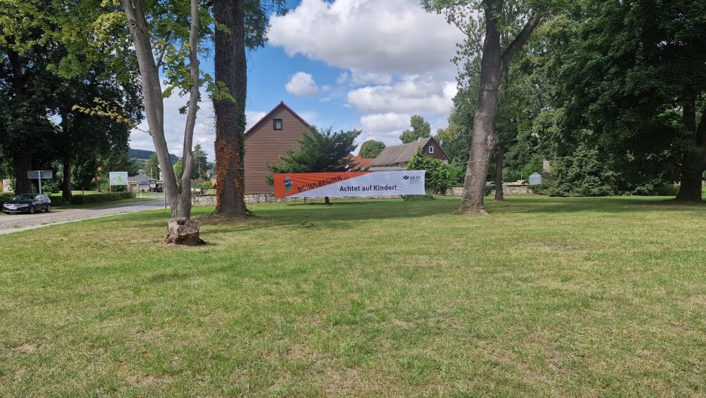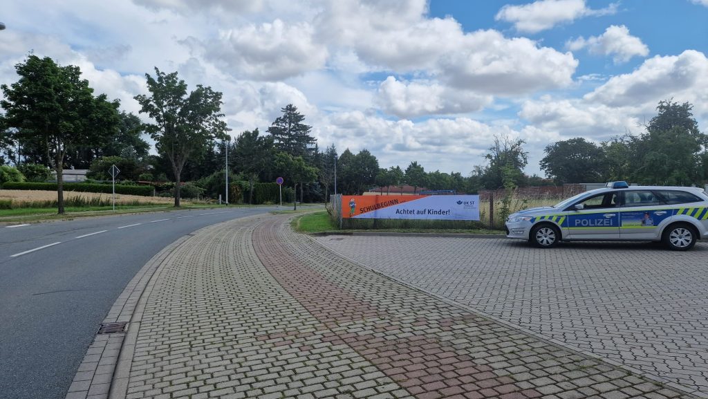Regionalbereichsbeamtinnen und -beamte hängten in den vergangenen Tagen zahlreiche Banner auf, die mit klaren Botschaften auf den Schulstart hinweisen und alle Verkehrsteilnehmenden zu besonderer Achtsamkeit einladen. Unter anderem in Badersleben platzierten die Regionalbereichsbeamten aus dem Huy entsprechende Hinweise in der Albert-Klaus-Straße und in der Anderbecker Straße – beides Hauptverkehrsstraßen und Schulwege.