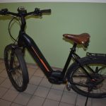 Bei dem Fahrrad handelt es sich um ein Trekkingrad des Herstellers KTM, Modell Macina Skaud 271 lfc, in den Farben Schwarz und Orange. Auffällig ist ein brauner Ledersattel eines englischen Herstellers.