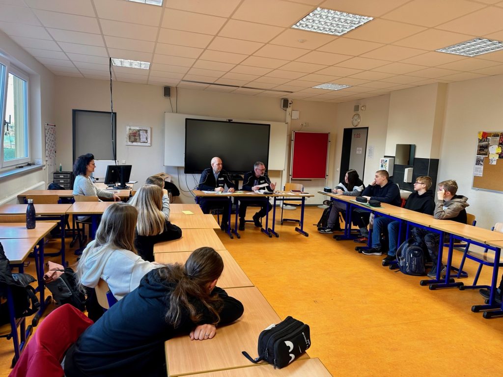 Auf Einladung der Gemeinschaftsschule Möckern besuchten die Regionalbereichsbeamten die 8. Klasse, um sich den Fragen der Schüler zu stellen. Im Rahmen des Sozialkundeunterrichtes konnten sich die Schüler im Vorfeld auf die Befragung der Kollegen vorbereiten. So konnten die Polizeibeamten in der kurzweiligen Stunde aus ihrem Berufsleben berichten und zu Themen wie Jugendstrafrecht, Umgang mit Böllern aber auch die Frage „Was macht die Polizei, wenn nichts los ist?“ Rede und Antwort stehen.