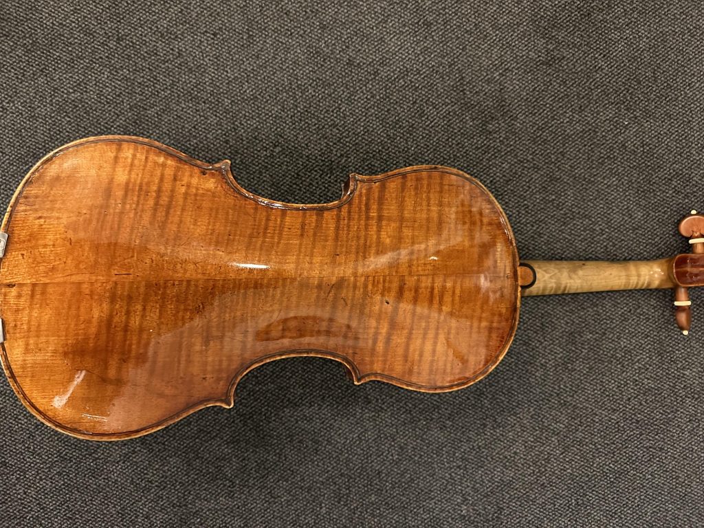 Im Anschluss durchsuchten die Täter sämtliche Räume nach Wertgegenständen. Letztendlich entwendeten sie Musikinstrumente, eine Vielzahl an Uhren sowie Gemälde. Unter anderem befand sich unter dem Diebesgut eine Violine, die auf der Rückseite eine reparierte Beschädigung aufwies sowie im Inneren einen aufgeklebten Zettel mit einer Aufschrift trug. Die Violine befand sich in einem schwarzen, glänzenden Koffer. Als die Wohnungsinhaber gegen 17:00 Uhr die Wohnung betreten wollten, stellten sie einen Einbruch fest und informierten unverzüglich die Polizei.