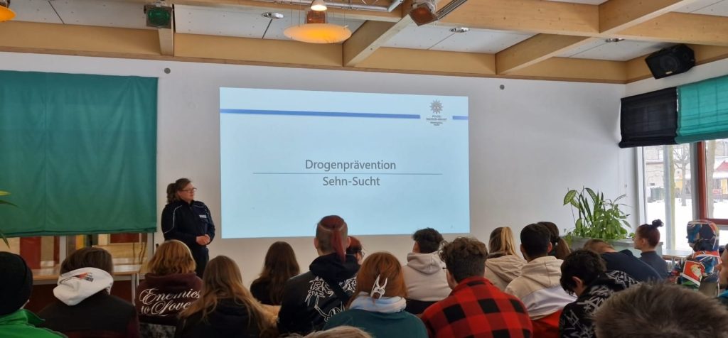 Im Rahmen eines Präventionstages zum Thema Sucht erhielt das Berufsbildungswerk Unterstützung von der Polizei. Ziel der Veranstaltung war es, die Teilnehmenden umfassend über die Gefahren von Suchtmitteln sowie deren rechtliche und gesundheitliche Folgen aufzuklären. Die Beamten der Polizei führten in mehreren Gruppen informative Vorträge zum Thema Drogen und deren Auswirkungen durch. Dabei wurde sowohl legale als auch illegale Substanzen thematisiert und deren Einfluss auf Wahrnehmung, Reaktionsfähigkeit und Gesundheit erläutert. Ein weiterer Schwerpunkt lag auf den Konsequenzen des Konsums von Drogen im Straßenverkehr. Die Polizei ging dabei gezielt auf Risiken und rechtliche Folgen ein, die entstehen, wenn man unter Einfluss von Alkohol und Drogen mit dem Fahrrad, dem E-Scooter oder einem Kraftfahrzeug unterwegs ist. Durch den direkten Austausch mit der Polizei konnten offene Fragen geklärt werden