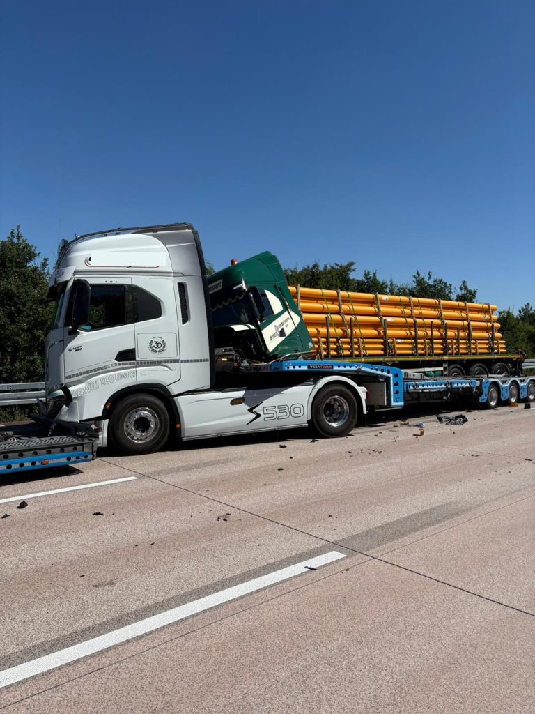Durch den Zusammenstoß erlitt der 53-jährige Fahrer des Autotransporters leichte Verletzungen und wurde für die Behandlung in ein nahegelegenes Krankenhaus gebracht. Unverletzt blieb der 63-jährige Unfallverursacher