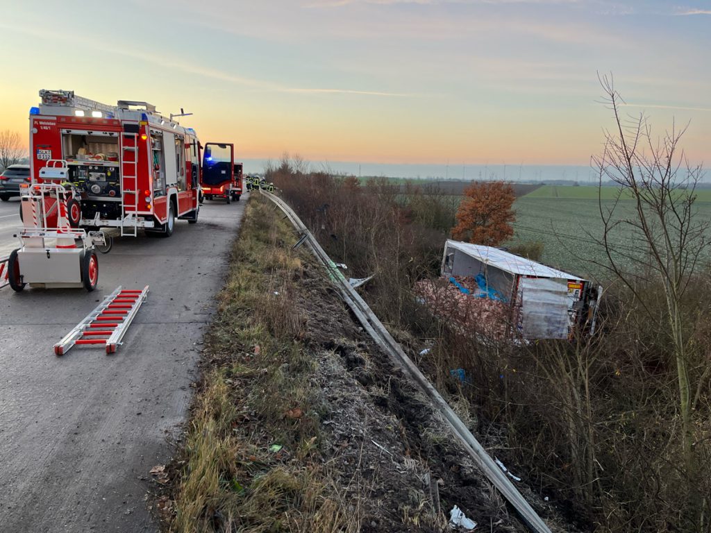 Am Donnerstagmorgen, dem 27.11.2025, ereignetet sich auf der A14 ein Verkehrsunfall mit einem Lkw, bei dem zwei Personen leicht verletzt wurden.