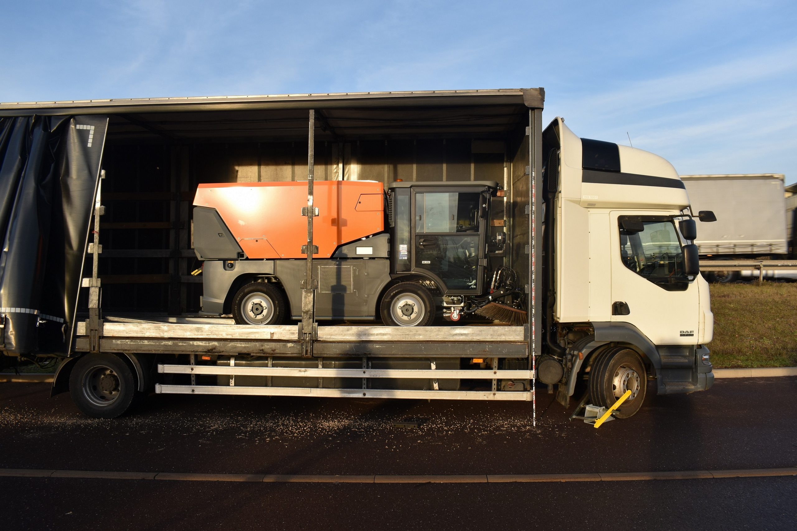 Im Rahmen der weiteren Überprüfung stellten die Beamten auf der Ladefläche des Lkw eine gestohlene Kehrmaschine fest. Diese war einen Tag zuvor in Niedersachsen entwendet worden und hat einen Wert im unteren sechsstelligen Bereich.