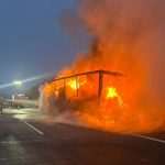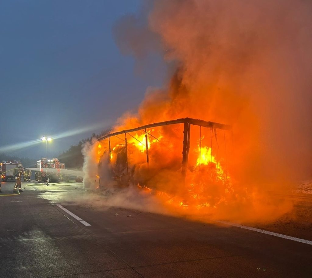 Ein 59-jähriger Lkw-Fahrer hörte während der Fahrt einen lauten Knall. Er fuhr auf den Standstreifen, stieg aus und bemerkte bereits erste Brandentwicklung im Bereich des Aufliegers. Er erkannte die Gefahr, koppelte vorausschauend die Zugmaschine ab und fuhr diese außer Reichweite der Flammen.